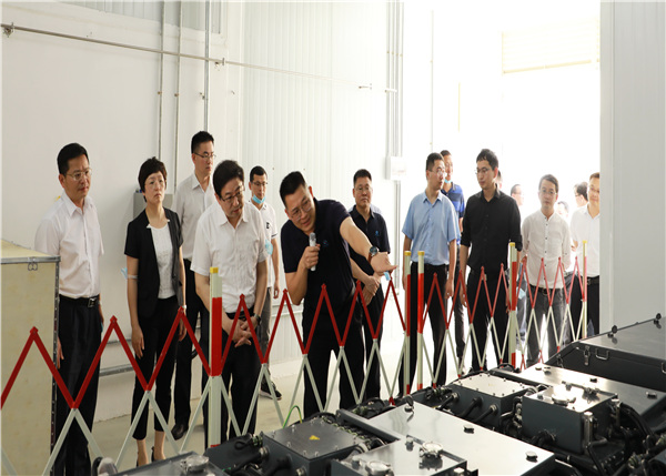 随后,杨军一行先后参观了国鸿燃料电池系统生产线、电堆生产车间,并关切地听取了燕希强博士的详细讲解,了解国鸿氢能的石墨双极板、电堆产品的技术优势、产品性能、来料工艺、规模产能等系列情况,对国鸿的整体技术水平表示肯定。